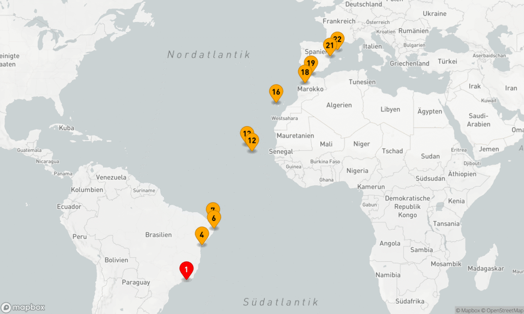 Von Südamerika über den Atlantik nach Europa reisen