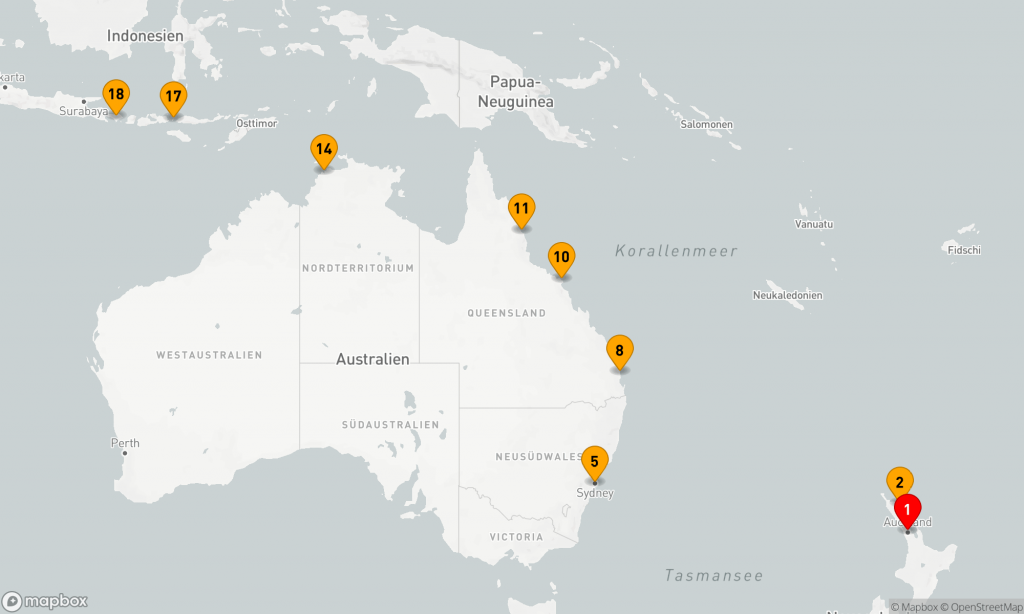 Von Bali über Australien nach Neuseeland