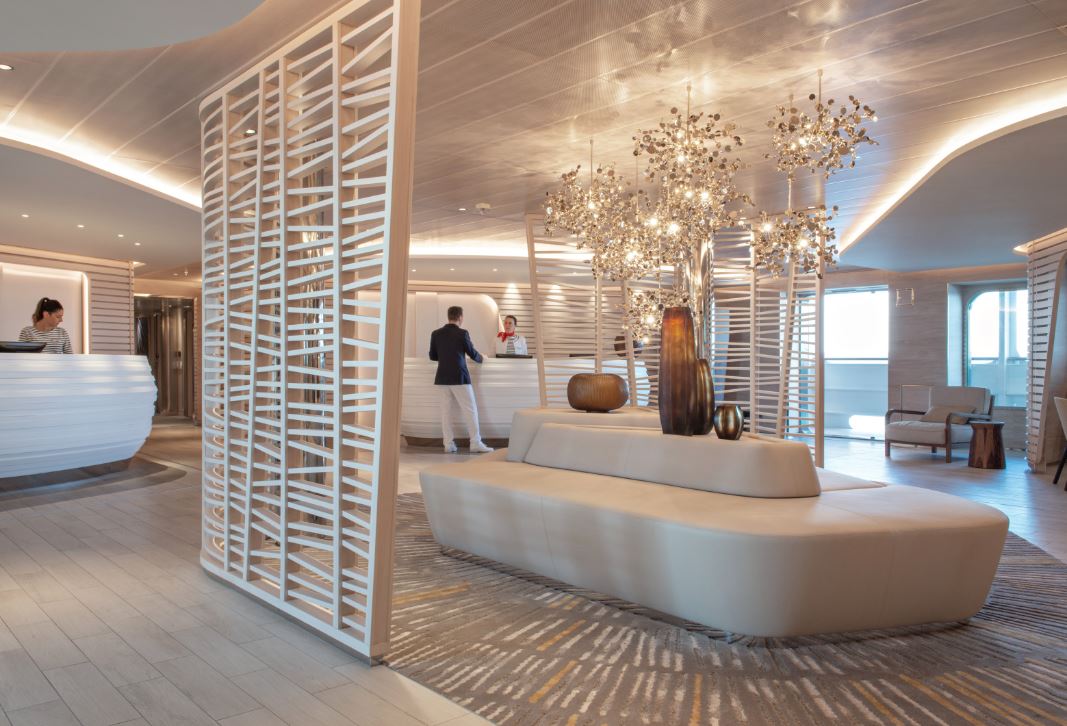 Mit ihrer modernen, umweltfreundlichen Technik, Kabinen mit exzellentem Design und großen Suiten mit Fensterfronten und zum Meer hin weit geöffneten Lounges, bietet Ihnen diese neue Jacht von kleiner Größe mit nur 92 Kabinen und Suiten ein einmaliges Kreuzfahrterlebnis. ‍
