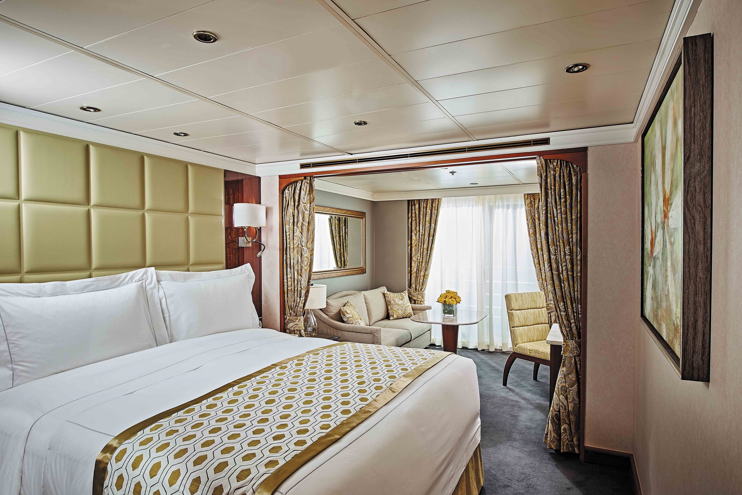 In dieser Oase des Luxus werden alle Ihre Wünsche berücksichtigt, so dass Sie sich sofort zu Hause fühlen. Alle Kabinen an Bord der Navigator sind mit 28 bis 109m² so geräumig und luxuriös, dass sie sich Suiten nennen dürfen. Alle Suiten warten mindestens mit Schlafzimmer und einer getrennter Sitzecke auf, die größeren Suiten mit bis zu zwei Schlafzimmern und drei Bädern. In allen Suiten finden Sie selbstverständlich ein Entertainment-Center. Bodenlange Fenster sorgen für viel Licht und Ihr privater Balkon (ab Kat. F) sorgt für Frischluft und fantastische Ausblicke. Ihre Stewardess kümmert sich jeden Tag zwei Mal um Ihre Suite, so dass sie immer so schön und aufgeräumt ist, wie am ersten Reisetag.