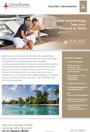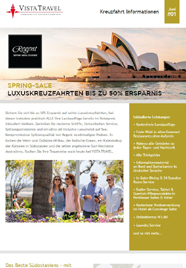 Willkommen in der exklusiven Kreuzfahrtwelt von Vista Travel. Auf dieser Seite finden Sie die letzten Ausgaben des Vista Travel Newsletters mit vielen Luxuskreuzfahrten zum besten Preis. Geben Sie Ihre Daten an, um den Newsletter in Zukunft zugeschickt zu bekommen.